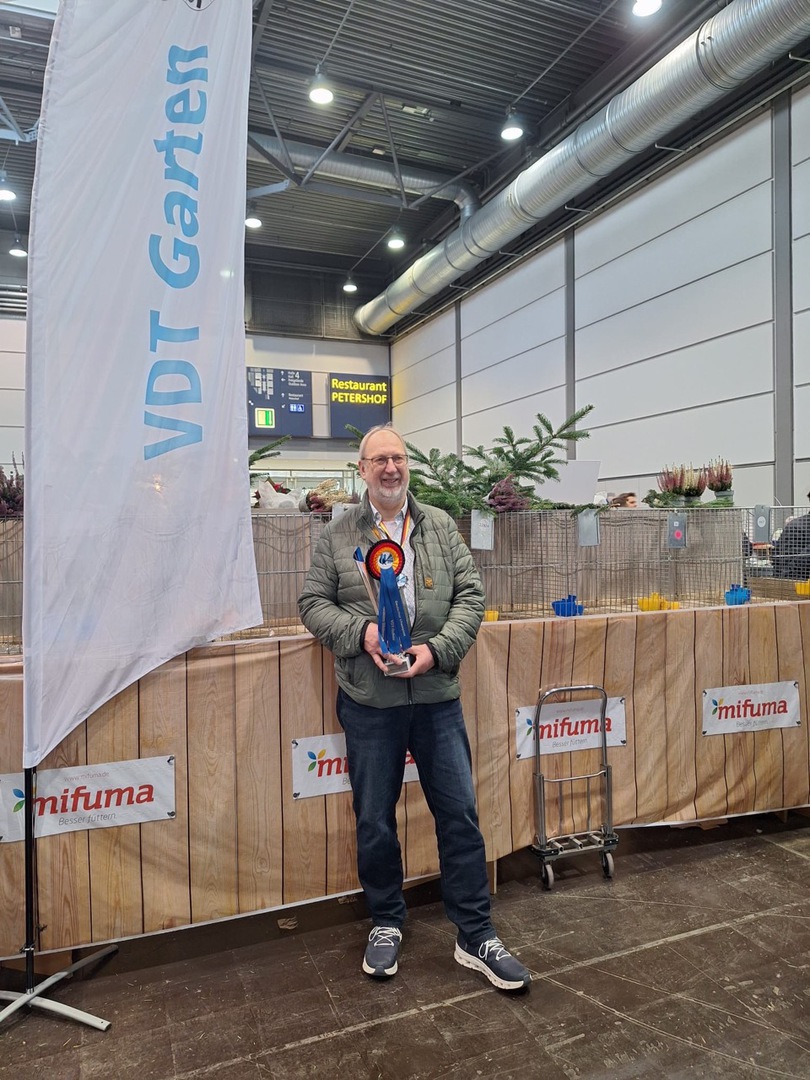 Besonders hervorzuheben ist der großartige Erfolg unseres Zuchtfreundes Manfred Gitz, der mit seiner Thüringer Flügeltaube blau-weißgeschuppt den Titel VDT-Champion auf Farbentauben erringen konnte. Außerdem schaffte es der Thüringer Weißlatz schwarz von Sören Büttner ebenfalls in die Riege der VDT-Championanwärter. Ebenso gratulieren wir herzlich Dr. Dustin Beyer, der mit dem VDT-Literaturpreis 2025 für das Thüringer Farbentauben-journal ausgezeichnet wurde.