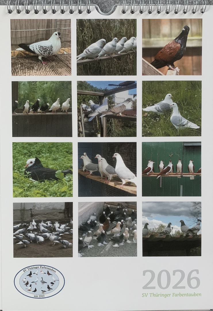 Mit vielen schönen Bildern über unsere Thüringer Farbentauben begleitet er uns durch das ganze Jahr und ist eine tolle Erinnerung an unsere Rassen.
