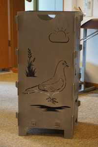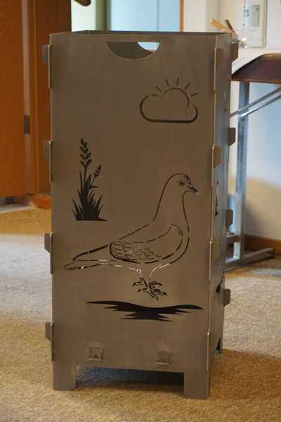 Flügeltaube darauf. Auch unser anderer ehemaliger Zuchtwart Eberhard Klüber hat ein paar Tage vorher diesen Feuerkorb erhalten. ( Mit einem Weißlatz natürlich )